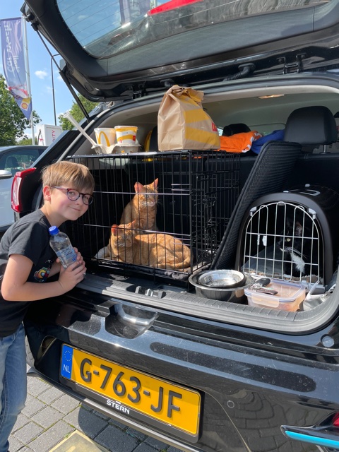 Op maandag 23-8 zijn wij met een grote gehuurde bus en 2 auto’s VOL, vertrokken naar Beltrum. Met dank aan de fijne hulp van mijn zwager Menno en mijn schoonouders, hebben we die maandag de belangrijkste spullen over kunnen verhuizen van Zaandam naar Beltrum. Ook de 3 poezen en Cooper zijn natuurlijk die dag meegegaan.