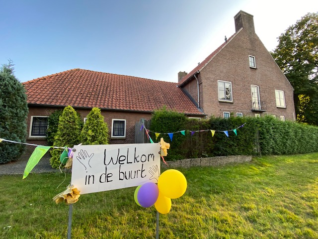 Bij aankomst in Beltrum wist ik echt even niet wat ik zag: ons huis was door onze nieuwe buren in de straat mooi versierd en voorzien van een ‘welkom in de buurt’-bord in de tuin #burenbedankt!