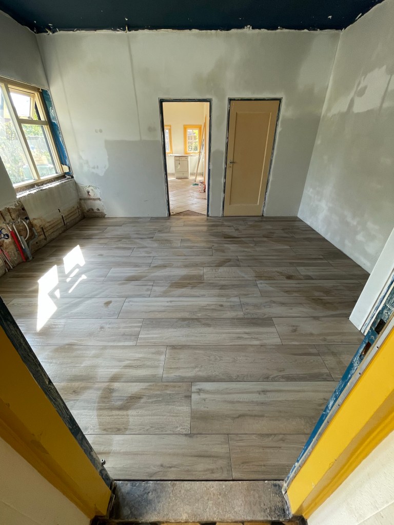 Er moet nog veel geschilderd worden, maar ik geloof dat ik dat ergens na de zomer ga doen. Ook de bijkeuken moet nog betegeld worden en her en der moet nog wat afgetimmerd worden. Maar dat komt wel. Het ergste (lees: bouwstof) hebben we achter de rug.