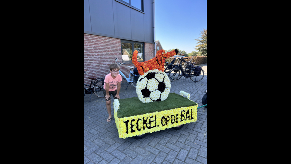 Ook had een van mijn cursisten voor het nieuwe jaar ‘Kniepertjes’ gebakken. En hebben wij onze eerste Dahlia’s geplakt op de wagen bij de Losse Flodders en heeft Sven meegelopen in de kinderoptocht van het bloemencorso met een eigen wagentje.