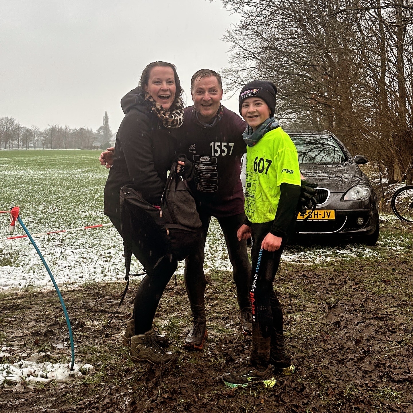 En de survivalrun in januari… die was verschrikkelijk. Niet alleen koud en nat, maar ook zó mooi. Want ik was ongelooflijk trots op Danny en Sven, die hem samen liepen. En op mijn moeder, die die dag – 5 januari 2025 – zeventig werd, en die we in het koude (winter)zonnetje hebben gezet.